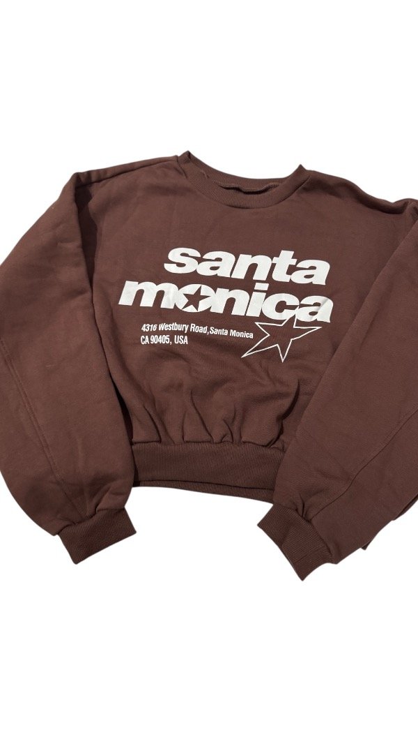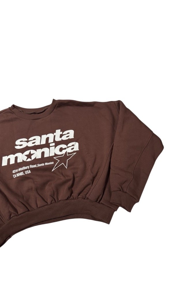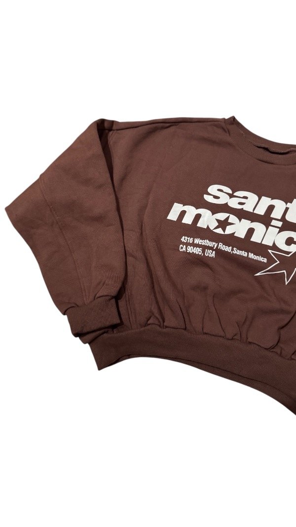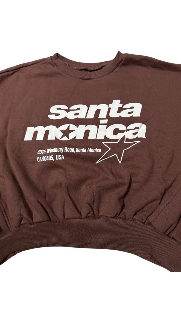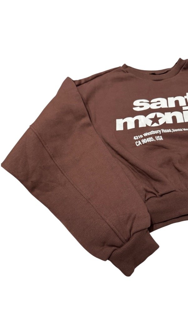 Buzo de frisa, sin capucha. Es de algodón. Es corto y oversize. Estampado.