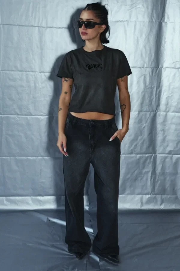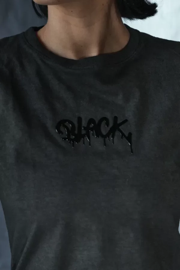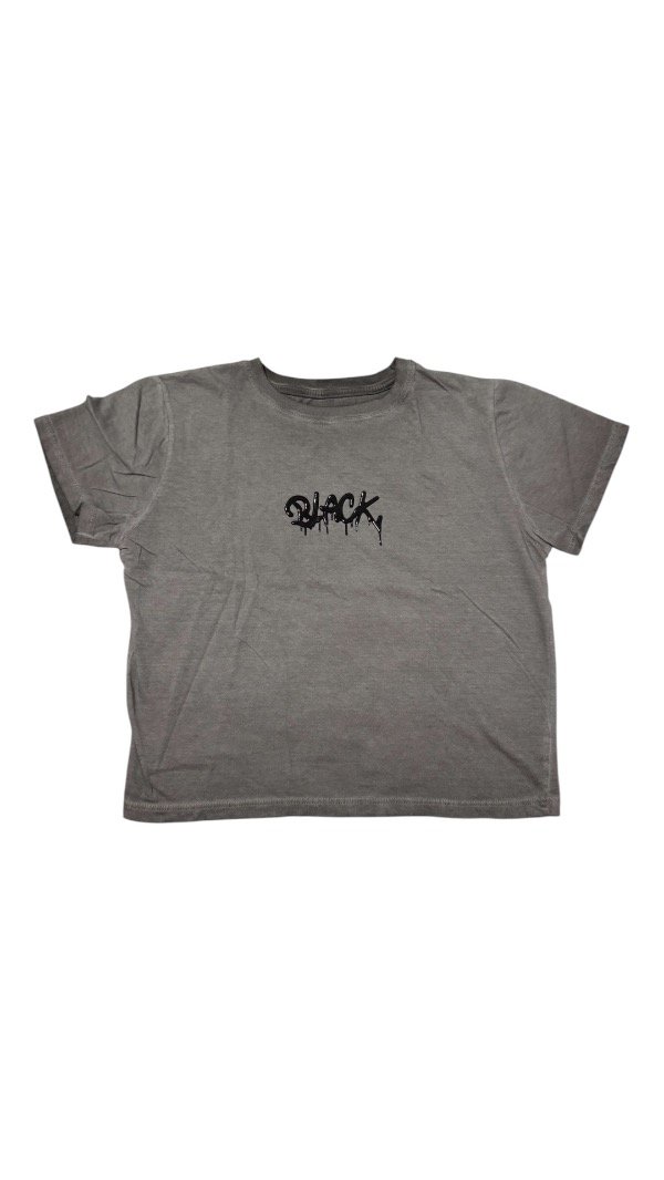 Remera de tela algodón jersey, estampada por delante con un aplique. Es flexible y un poco suelta.