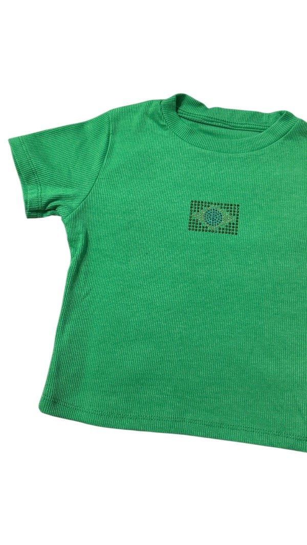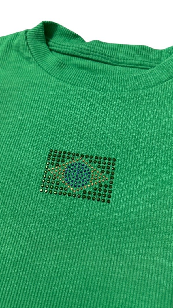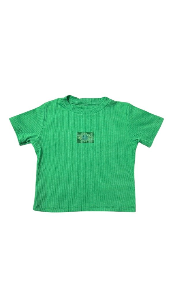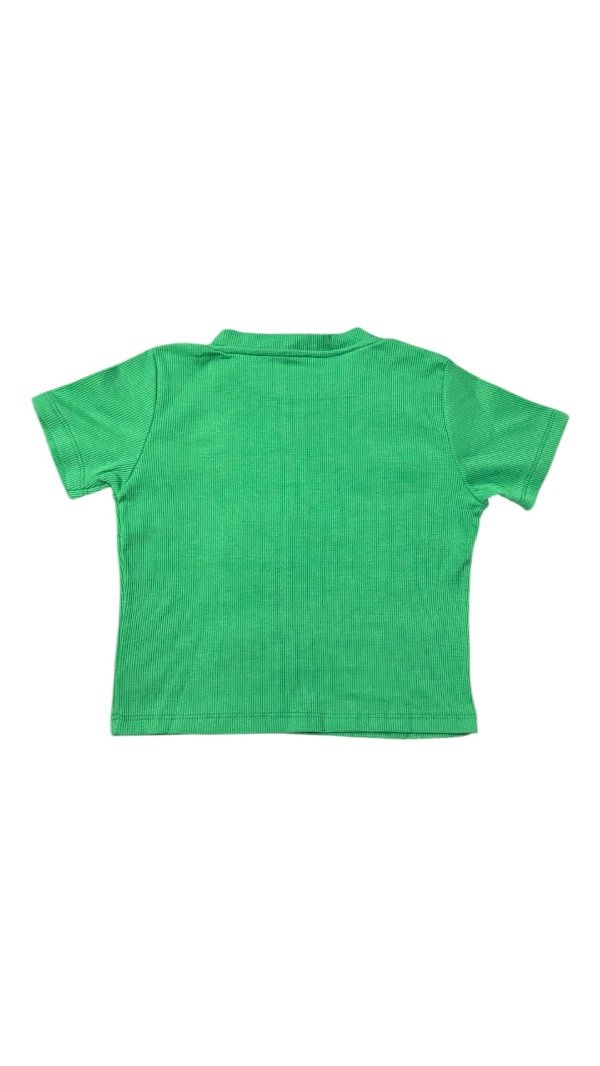Remera cuello redondo de algodón ribb. La tela es al cuerpo y elastizada.