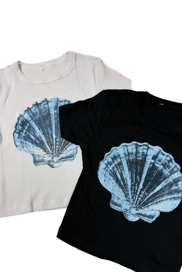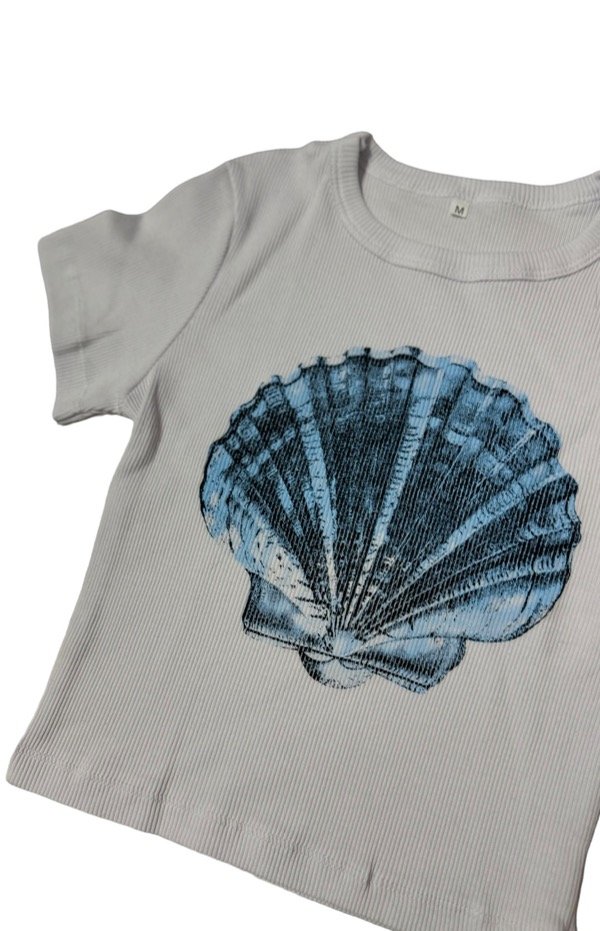 Remera de algodón con lycra, es elastizada y al cuerpo. Está estampada.