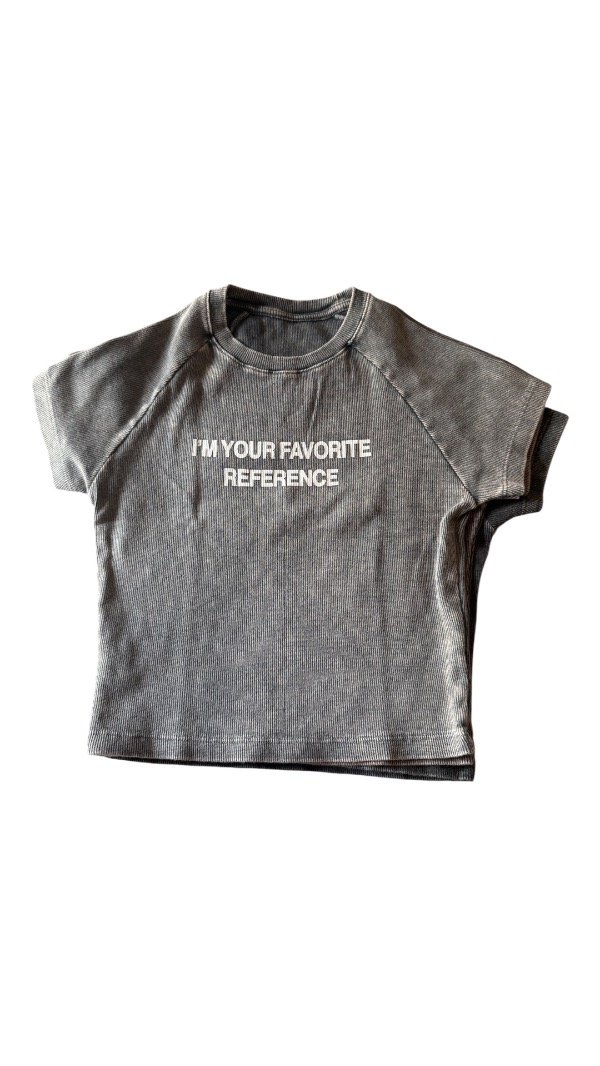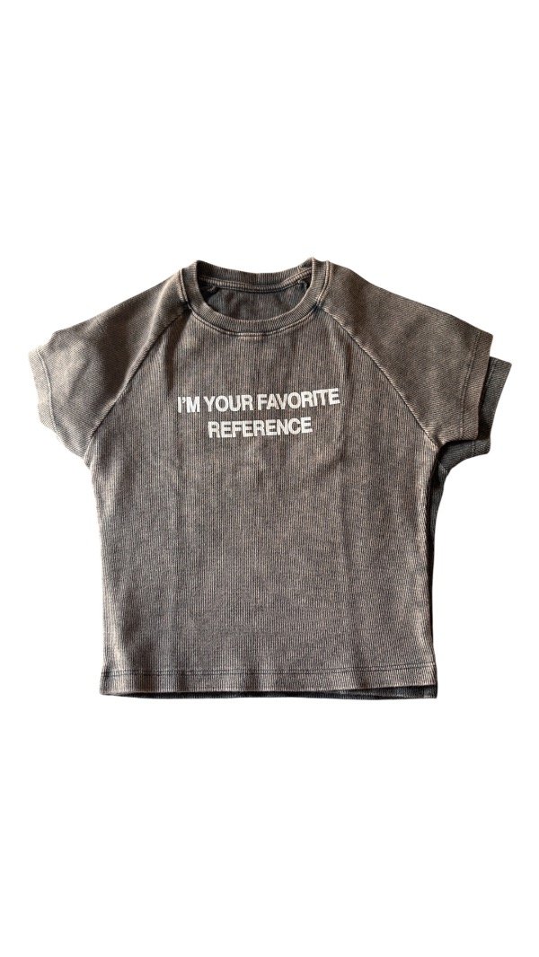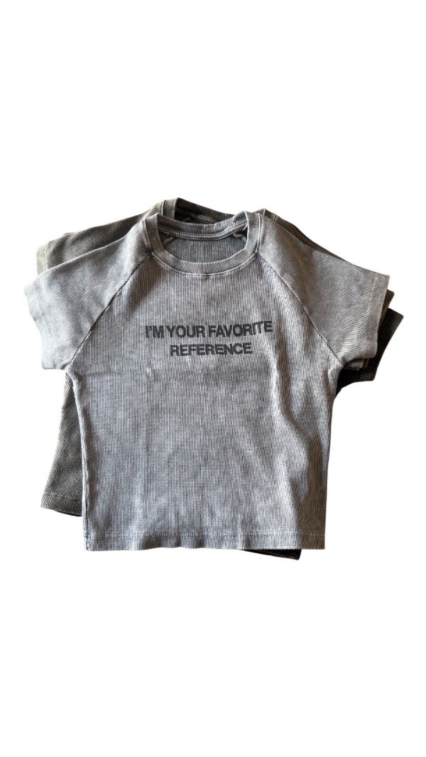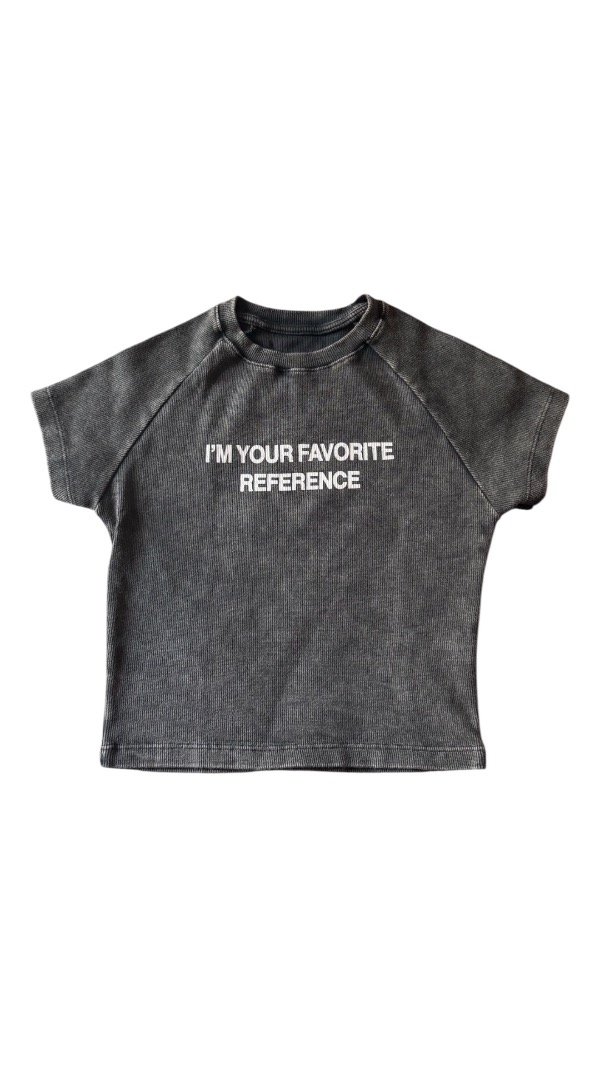 Remera baby tee, estampada, la tela es algodón con lycra, por lo que es al cuerpo. Es flexible. Tiene escote en V.