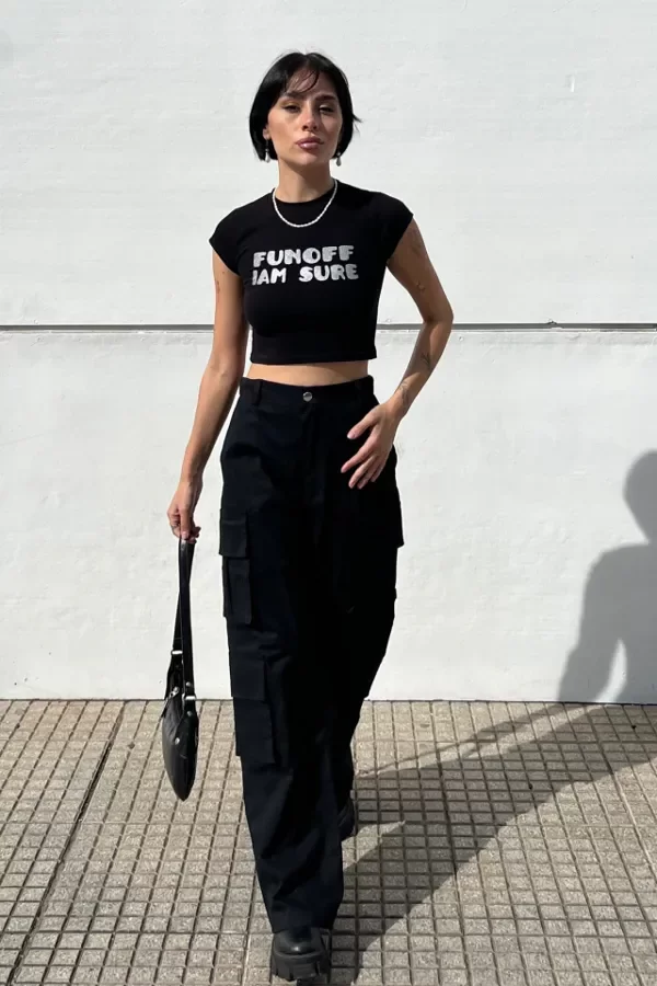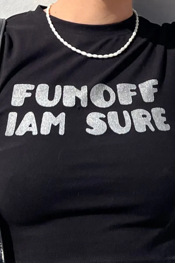 Remera de algodón, es al cuerpo y elastizada. La estampa tiene brillitos.