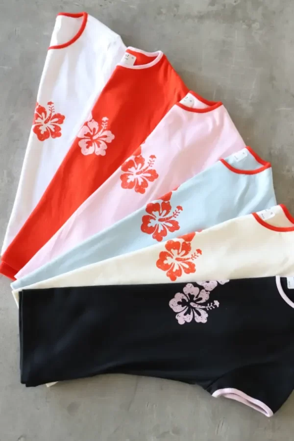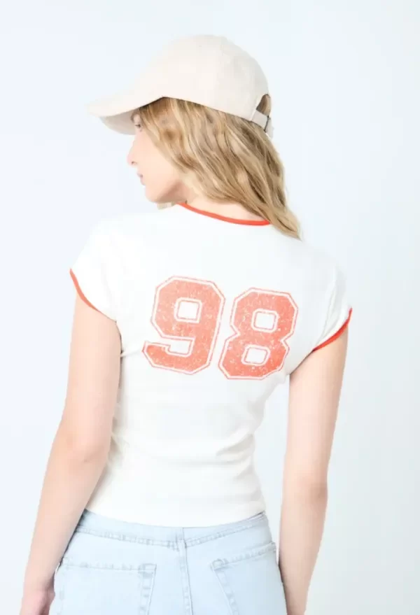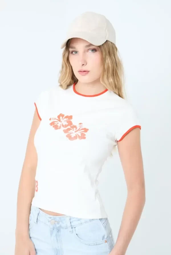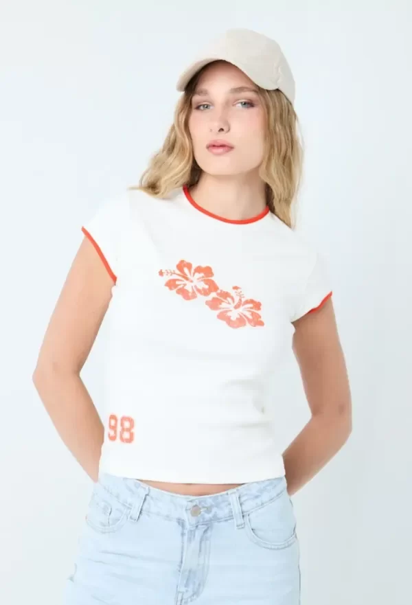 Remera de algodón con lycra, estampada por delante y por detrás. Es flexible y al cuerpo.