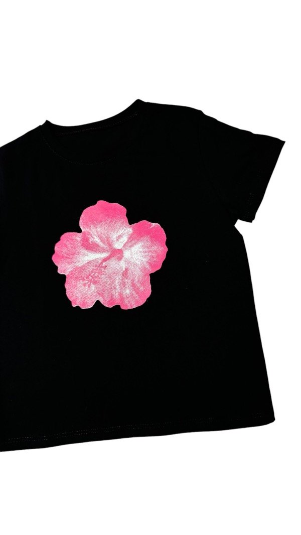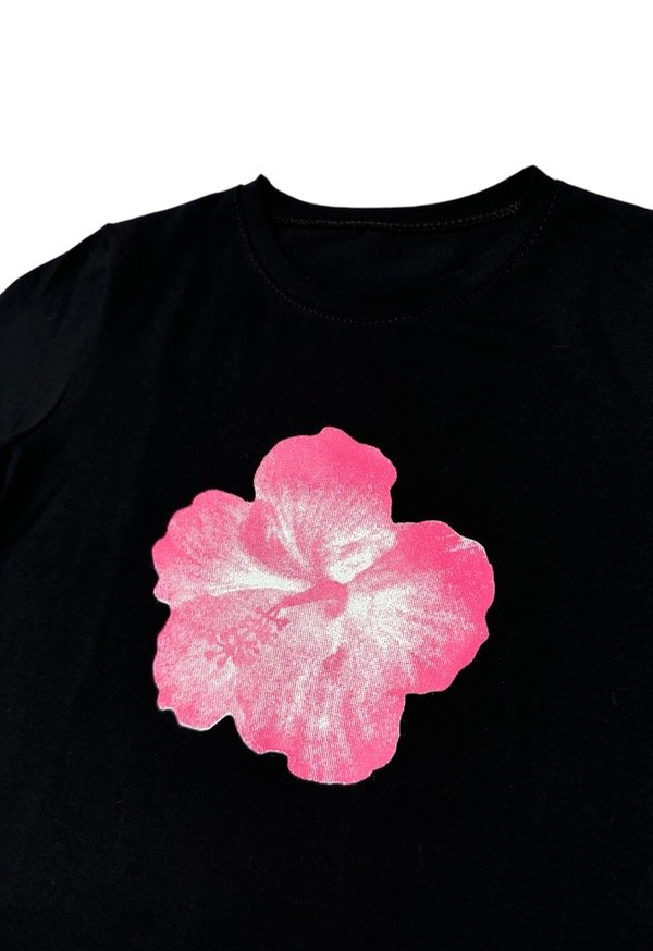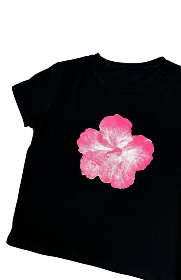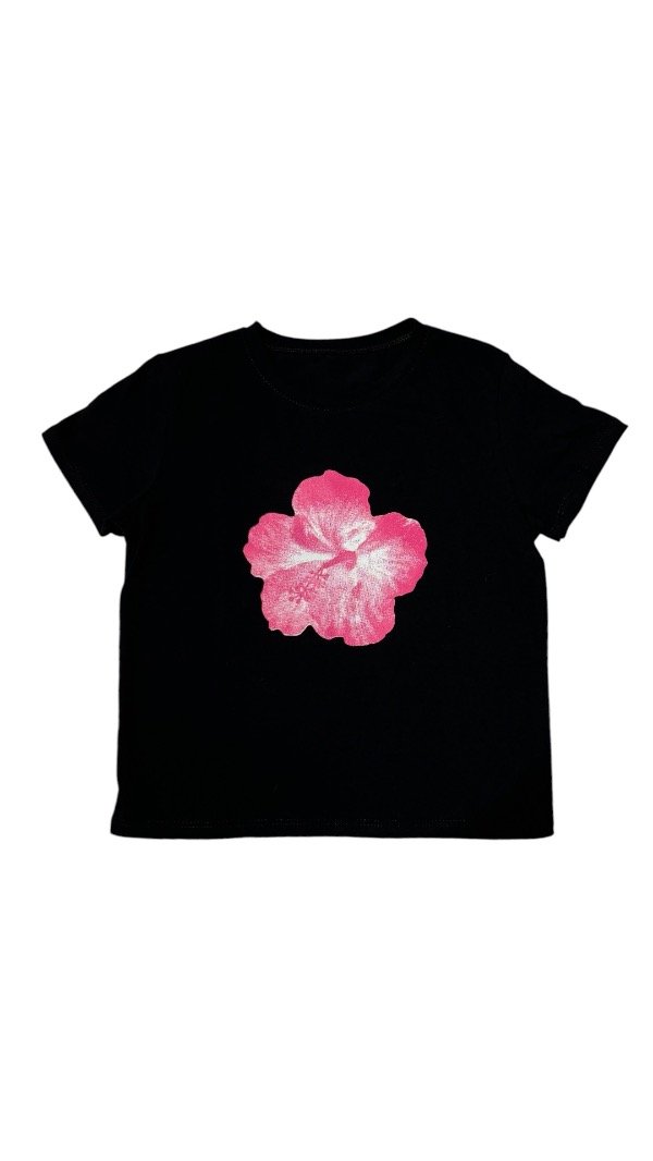 Remera de algodón con lycra, flexible y al cuerpo. Tiene estampa delantera.