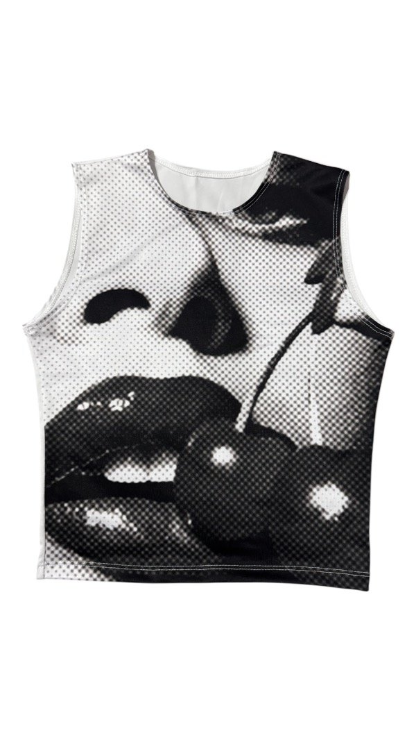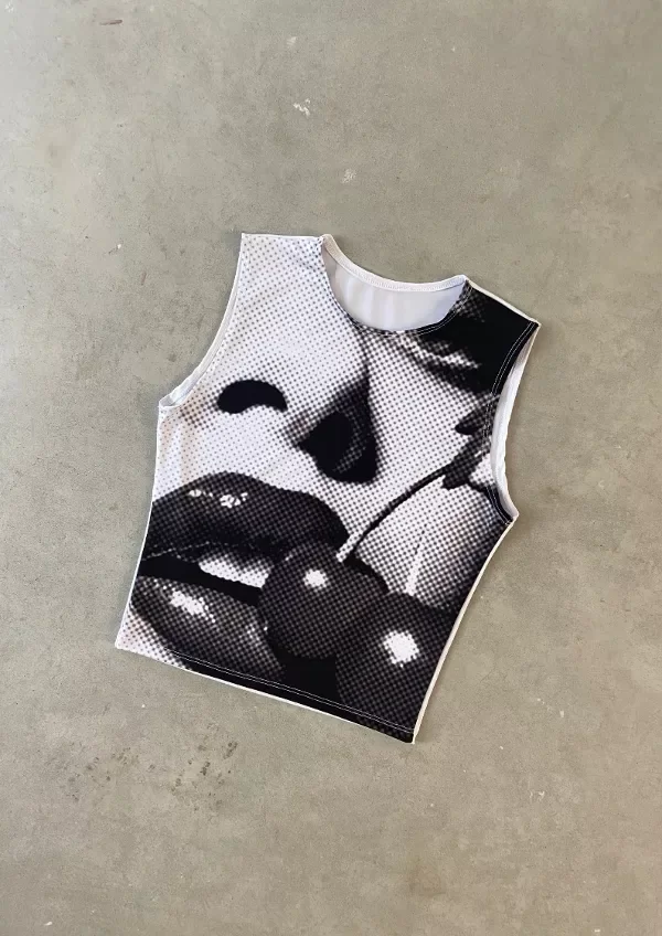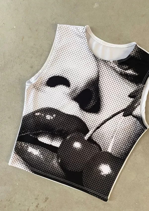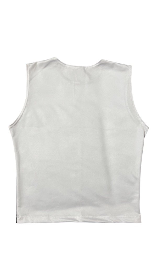 Musculosa de tela microfibra con sublimación en la parte delantera, en la parte trasera no está sublimada por lo que es blanca.