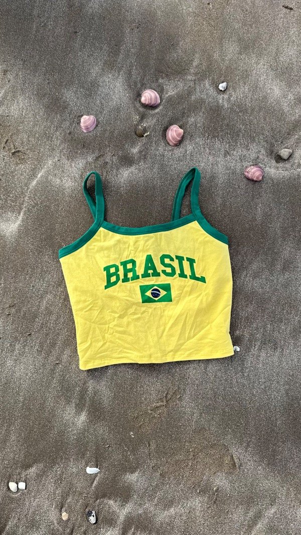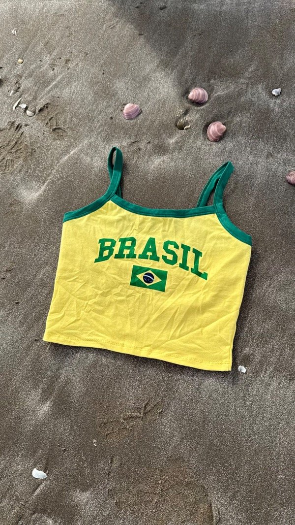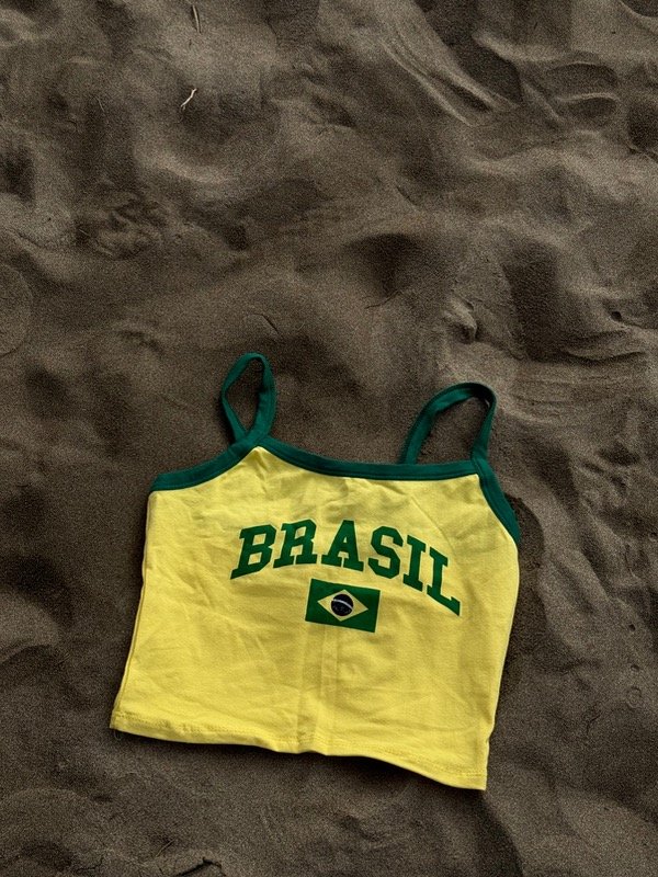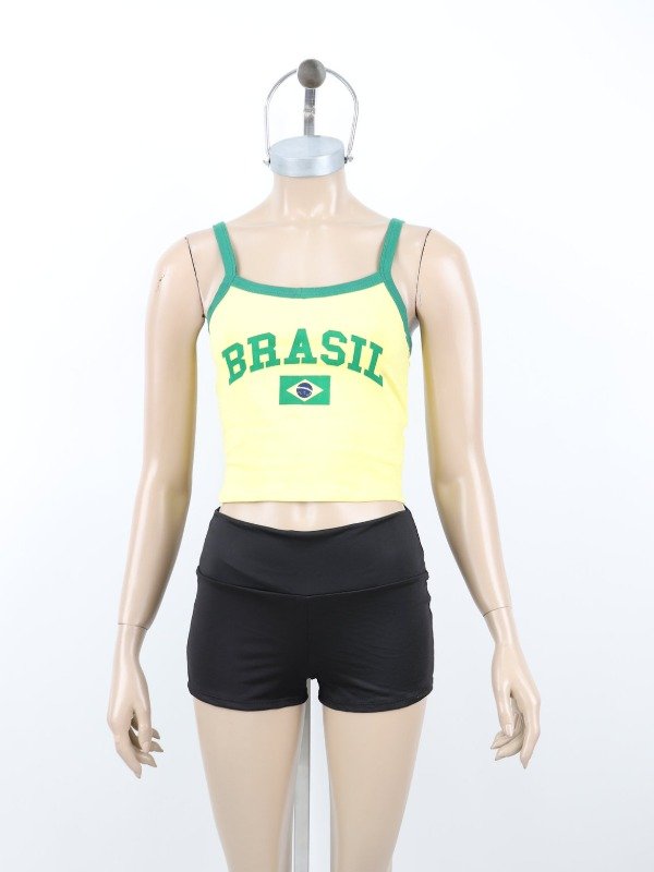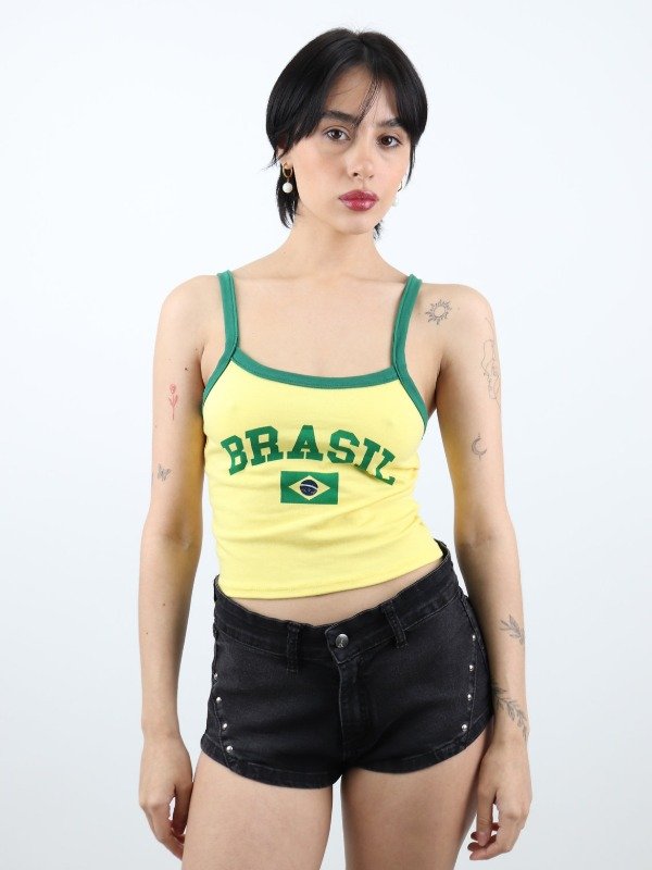 Top con tiras estampada de microfibra (95% viscosa, 5% lycra) es algo flexible y al cuerpo.