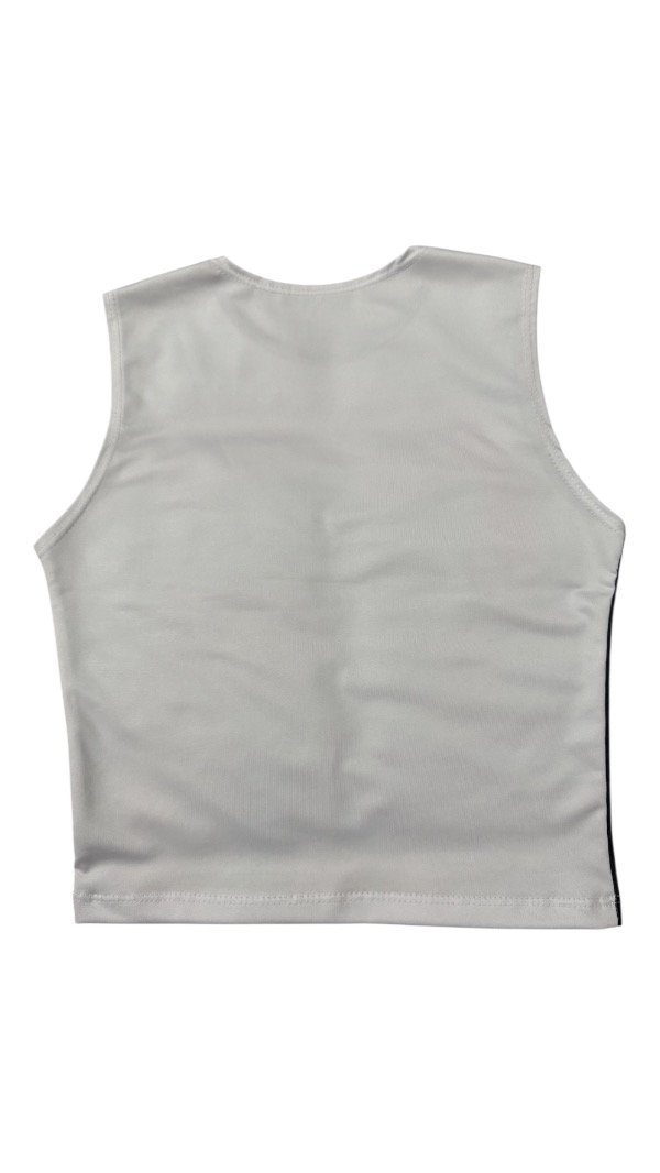 Musculosa de tela microfibra con sublimación en la parte delantera, en la parte trasera no está sublimada por lo que es blanca.