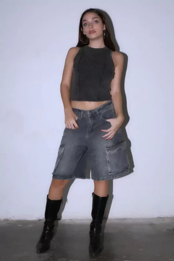 Remera corta, estampada, de algodón jersey, un poco flexible.