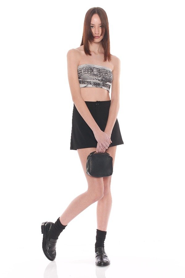 Top bando strapless de tela microfibra, súper flexible y al cuerpo.